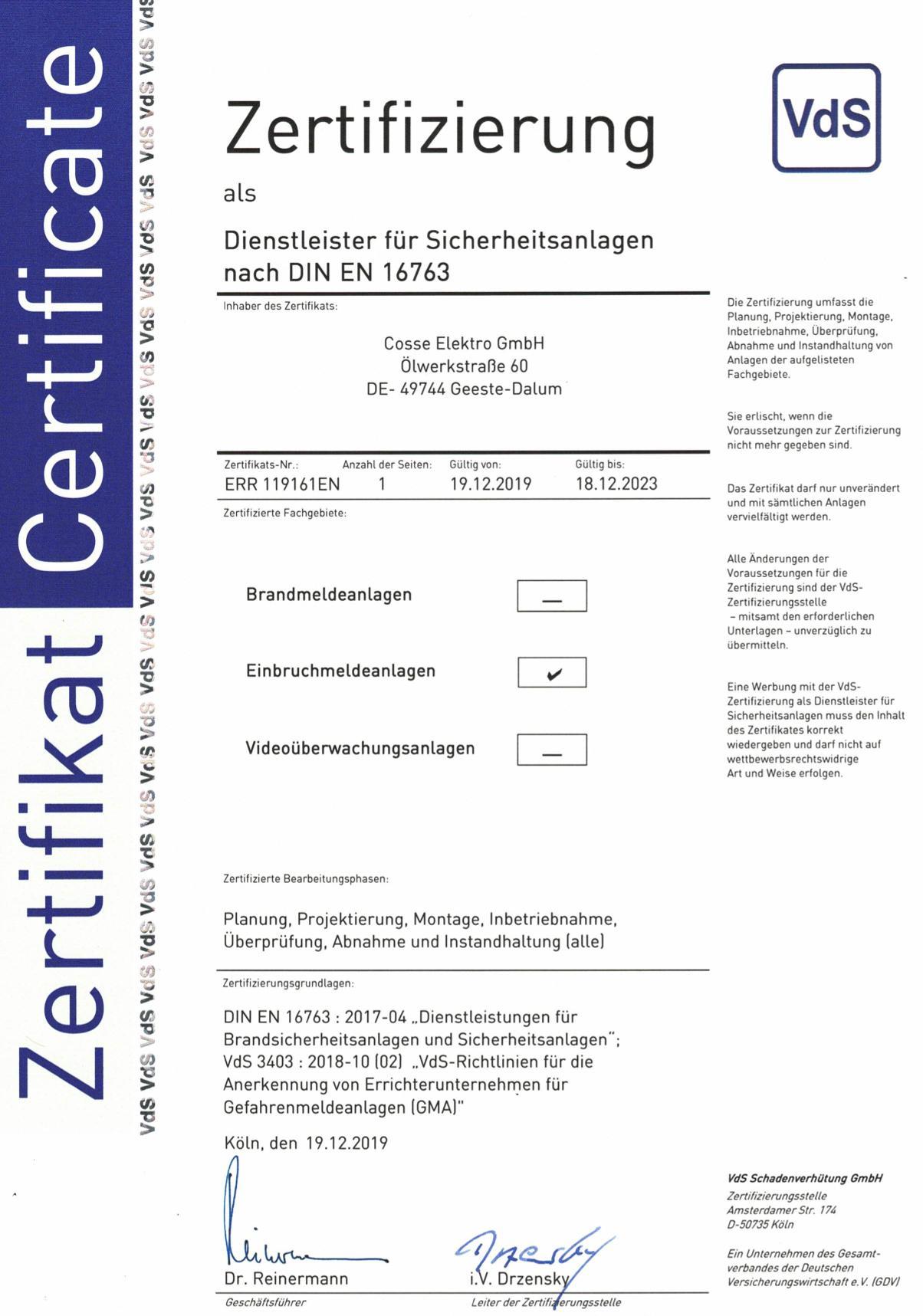Download: Zertifikation VdS Errichterfirma für EMA Anlagen